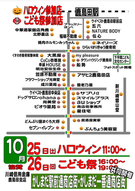 かしまだ駅前通商店街・かしまだ一番通商店街の合同開催イベントです。